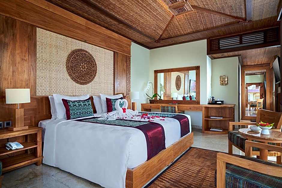 무성한 정원 속에 자리한 이 숙소는 정원과 주요 명소의 전망을 제공하며, 길이 6.5피트(약 2.0m) 이상인 특별히 긴 침대, 발코니, 비데, 욕조 등 세심한 편의시설로 투숙객을 맞이합니다. 하루를 시작하기 위한 조식이 구내에서 제공되며, 구내의 Sakti Restaurant(사크티 레스토랑)은 전통적인 분위기 속에서 인도네시아 요리와 세계 각국의 요리를 선보여 섬의 중심부를 둘러본 뒤 석양을 바라보며 즐기기에 안성맞춤인 식사를 제공합니다.